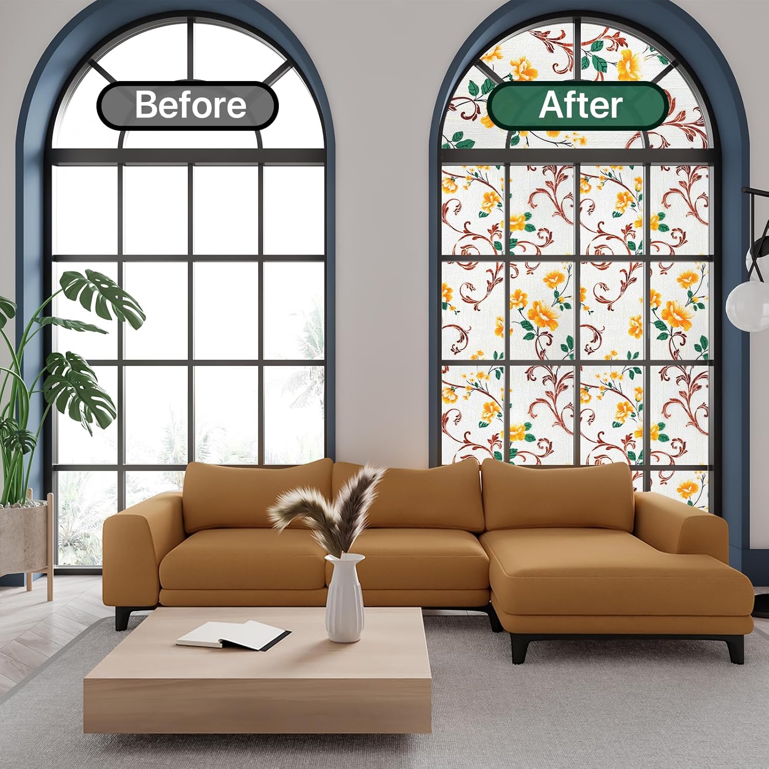 - Heat Control & Energy Saving: The decorative window film for home reflects some of the heat back outside, thus reducing the amount of heat transmitted through window glass. Keeping you cooler in the summer, helping you save on energy costs and making your home more comfortable. Hurry and experience our products