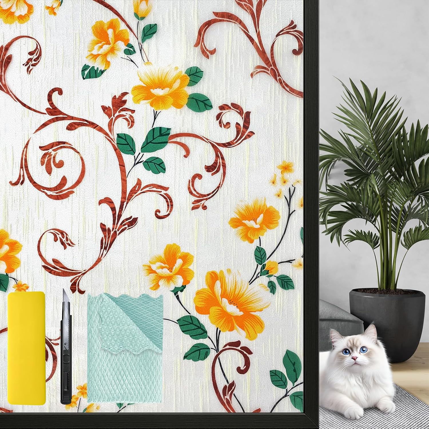 Niviy Stained Glass Window Privacy Film 3D Frosted Glass Window Decals UV Protection Sun Blocking Static Clings Non Adhesive Window Stickers for Home 11.8 x 78.7 inch