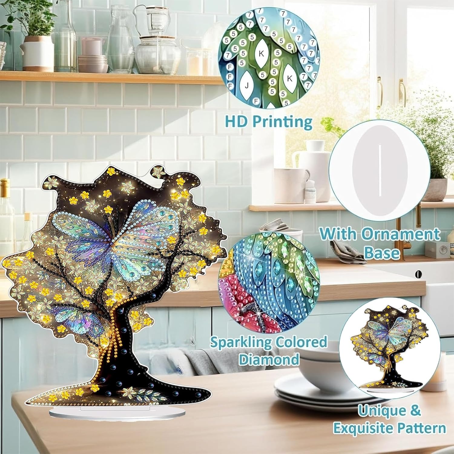 Diamond Painting Kits for Adults Beginners, 5D Full Drill Tree of Life Crystal Art Desktop Ornament, DIY Single Sided Home Office Desk Decor, Creative Craft Gift Set with Tools