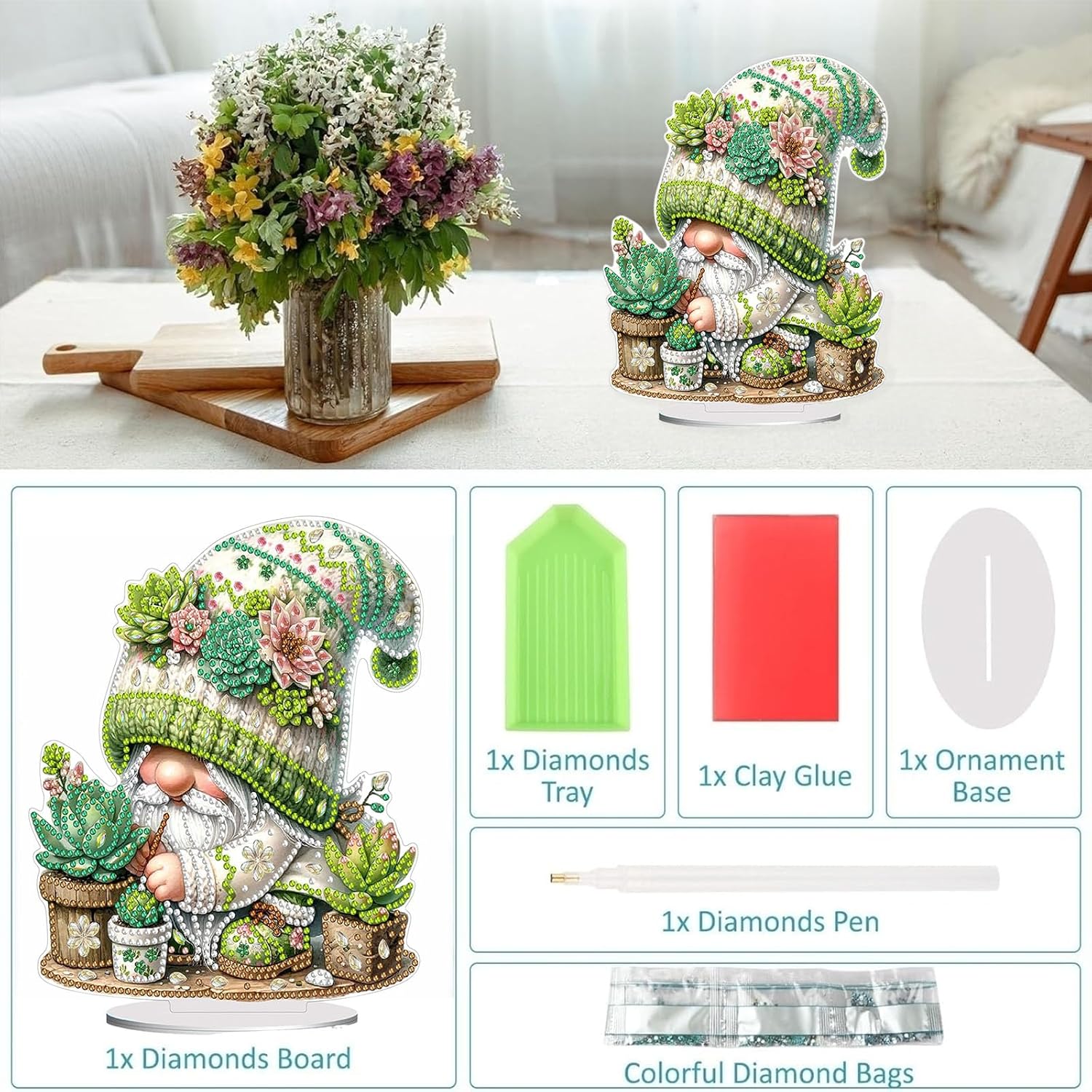 Diamond Painting Kits for Adults Beginners, 5D Full Drill Dwarf Succulents Crystal Art Desktop Ornament, DIY Single Sided Home Office Desk Decor, Creative Craft Gift Set with Tools