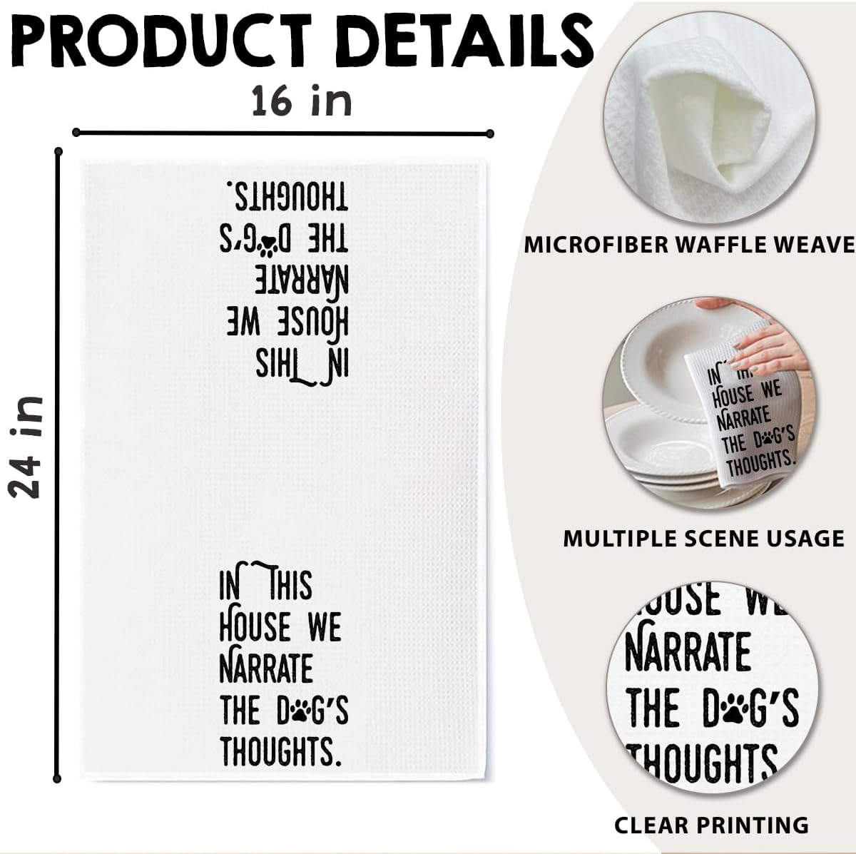 Dog Kitchen Towel, Waffle Weave Microfiber Dish Towel, in This House We Narrate The Dog's Thoughts, Funny Pet Decor Gift for Dog Moms, Animal Lovers
