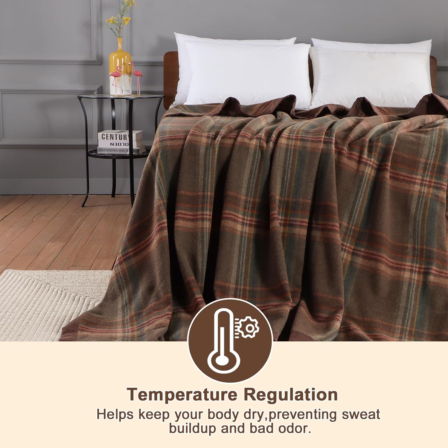 YOUR MOON 100% Pure Merino Wool Twin Size, Australian Organic Natural Wool Blanket, Hypoallergenic Wool Blanket for Bed, Medium Weight(Plaid Brown, 66 * 90)