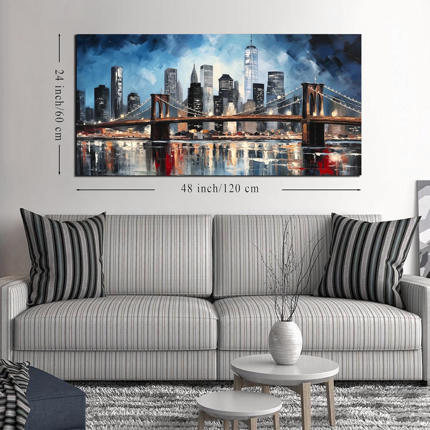 Brooklyn Bridge Wall Decor for Living Room City Canvas Wall Art for Office Blue and Black Bedroom Wall Art 24 x 48 Inch