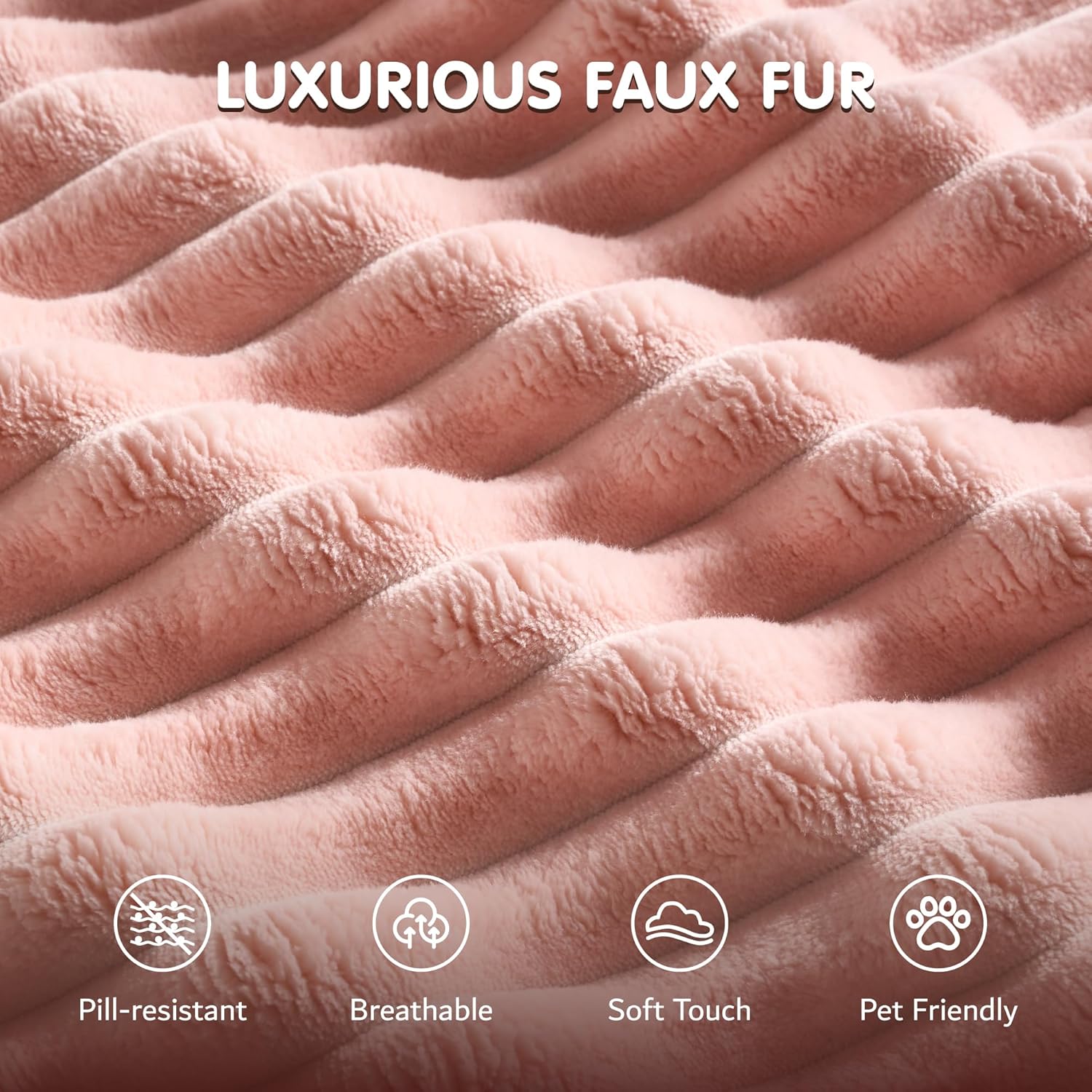 ovios 58" Oversized Round Chair Lounge Chaise Indoor, No Assembly Required, Cloud Large Circle Chair with Plush Fuax Fur, Fluffy Modern Sleeper Sofa Bed for Reading Yoga, Pink (Plush Corduroy Fabric)