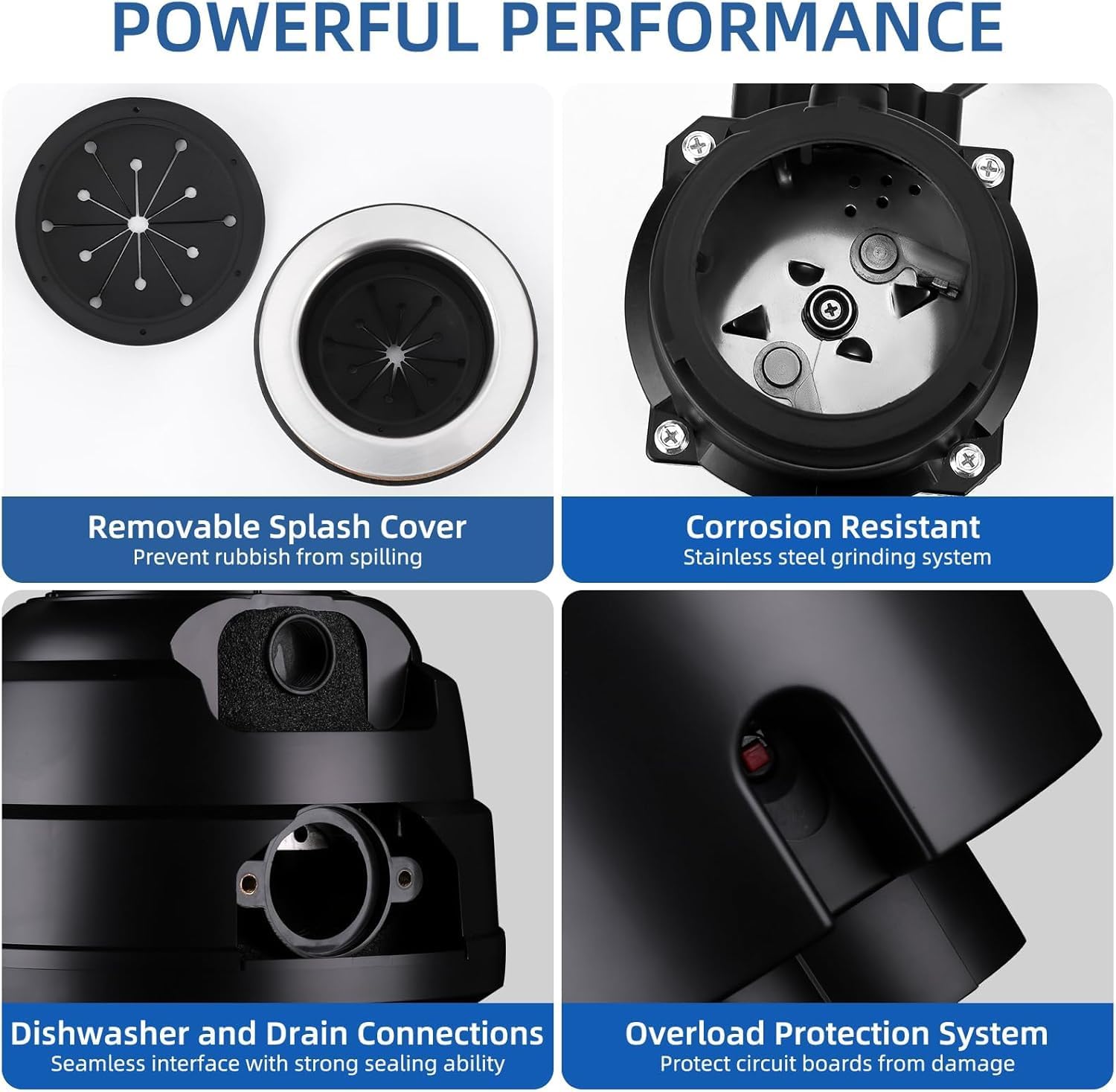 - Durable construction: Equipped with overload protection, this garbage disposer uses corrosion-resistant stainless steel grinding components and an integrated overload protection system to prevent overheating and circuit damage, ensuring your sink garbage disposal tasks are long-lasting and reliable.