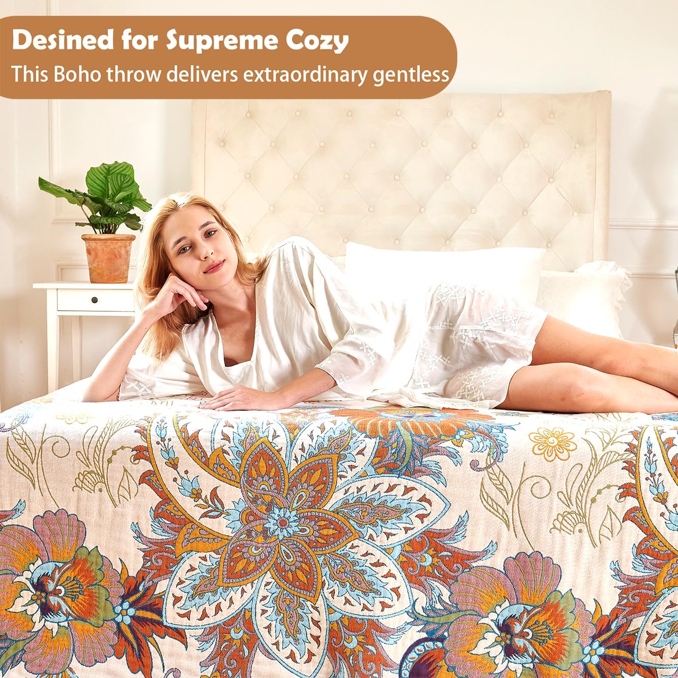 - PREMIUM 100% COTTON CONSTRUCTION: Crafted with exclusive 4-layer breathable cotton fibers in pure natural structure, premium cotton that delivers a baby-soft Class A texture,our boho throw blanket ensures superior softness & temperature regulation. Measuring 60" x 80" 2.2lb