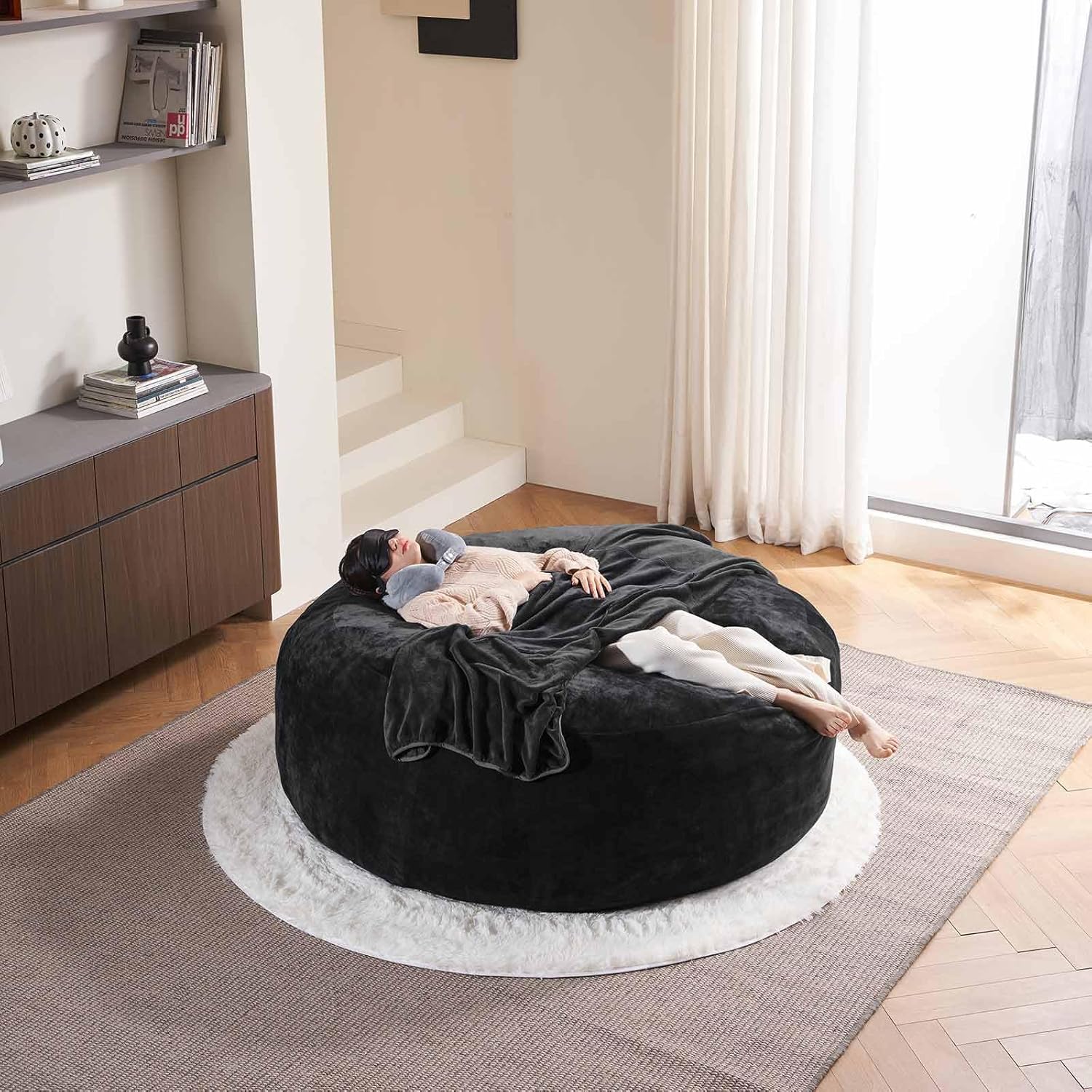 6FT,Oversized Bean Bag Chairs for Adults,Giant beanbag with Filler Included,Fluffy Memory Foam,Soft and Comfy Corduroy Fabric,Gaming Chairs Suitable for Living Room and Bedroom (Black, 6 Foot)