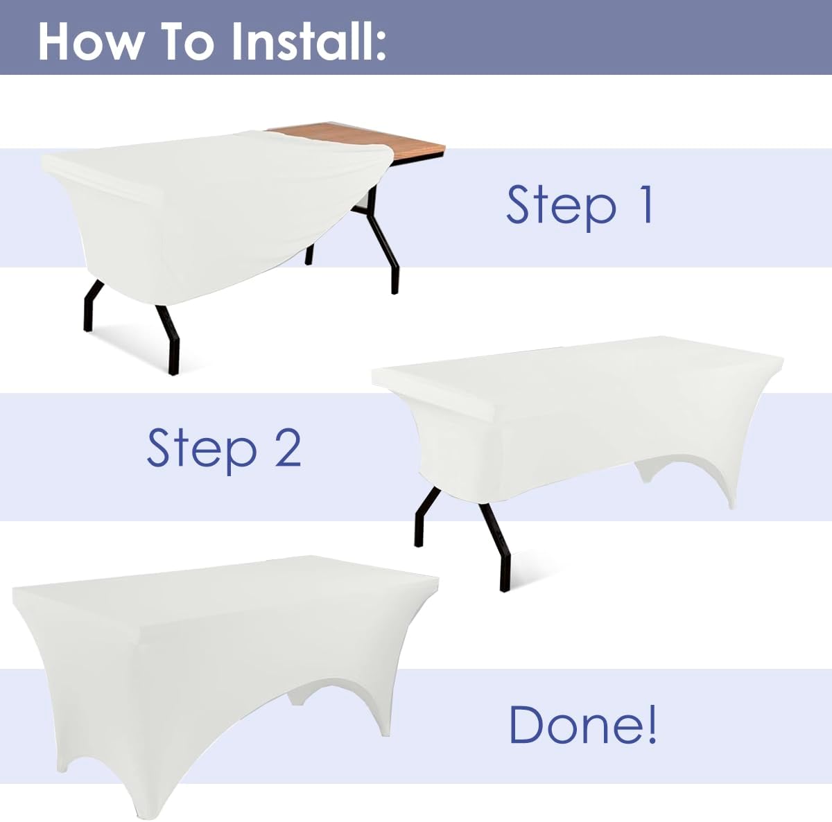 Craft And Party 6 Pack 8ft White Spandex Tablecloth – Fitted Stretch Cover – Universal Fit for Folding Tables – Wrinkle-Free, Washable – Ideal for Parties, Weddings, Events