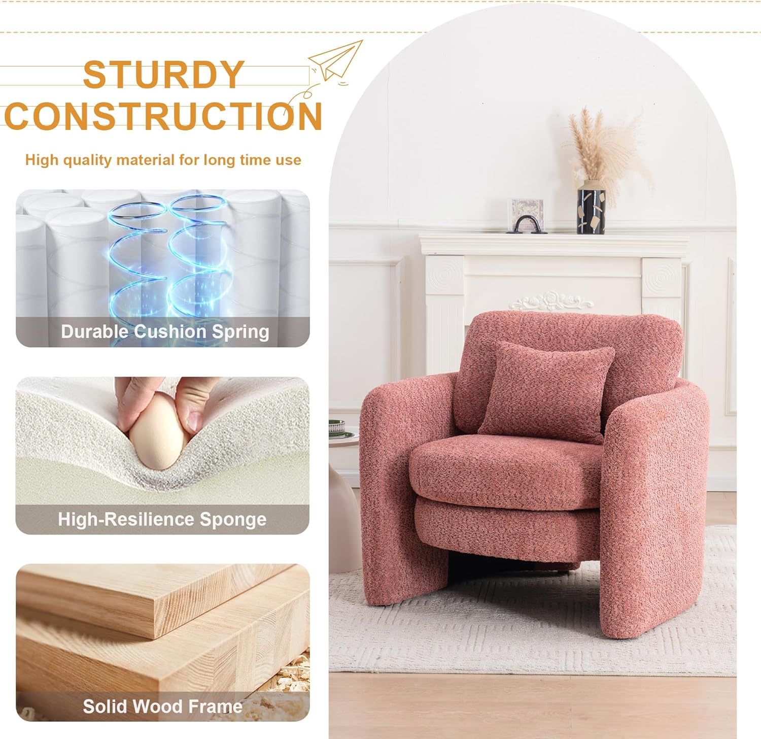 Chenille Accent Armchair Oversize Upholstered Barrel Comfy Modern Round Lounge Sofa Chair with Pillow Cozy Reading Chairs for Apartment,Office,Living Room,Dining,Makeup,Club,Pink 2SET
