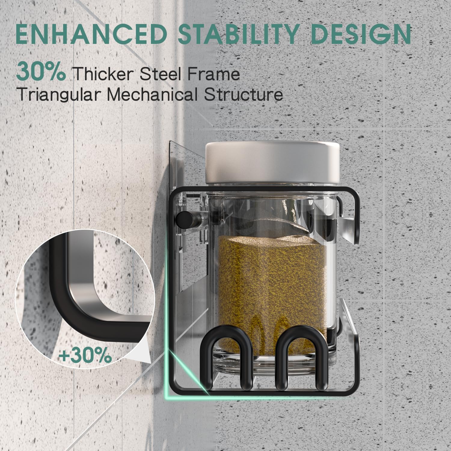 - Stable Guardrail & Wider Adhesive Stickers - Our spice rack organizer for cabinet door added side guards and improved two-in-one wider adhesive stickers for increased safety and stability. The adhesive spice racks have guard rails prevent spice from falling, while the wider and stronger stickers provide extra protection and peace of mind in your busy kitchen