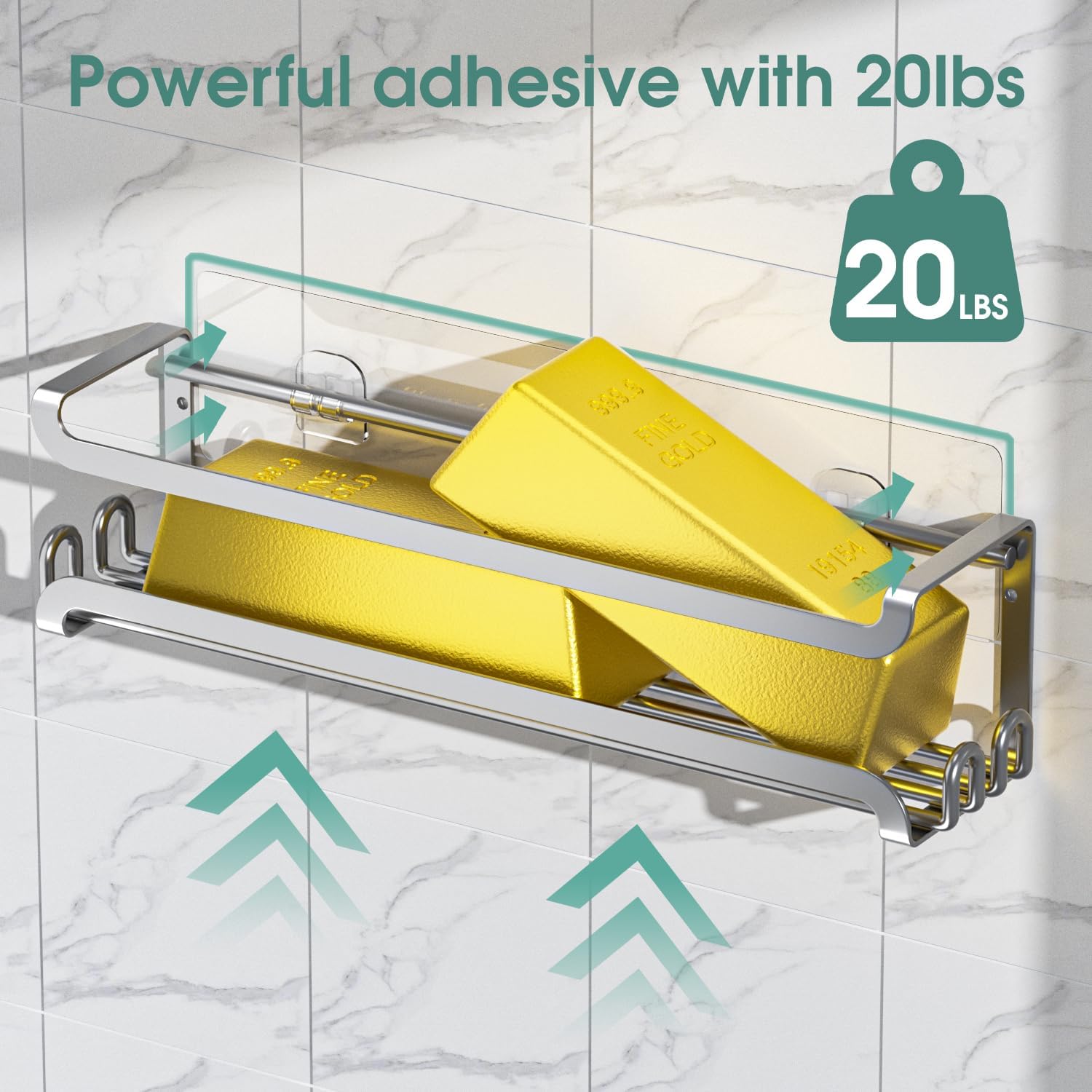 LUCYCAZ 2 Pack Wall Mounted Spice Rack with 16 Hooks, Spice Organizer Shelf for Stove Cabinet Pantry Door,Screw or Adhesive Spice Shelf Hanging Wall Spice Rack in Kitchen and RV (Silver, 2 PACK)