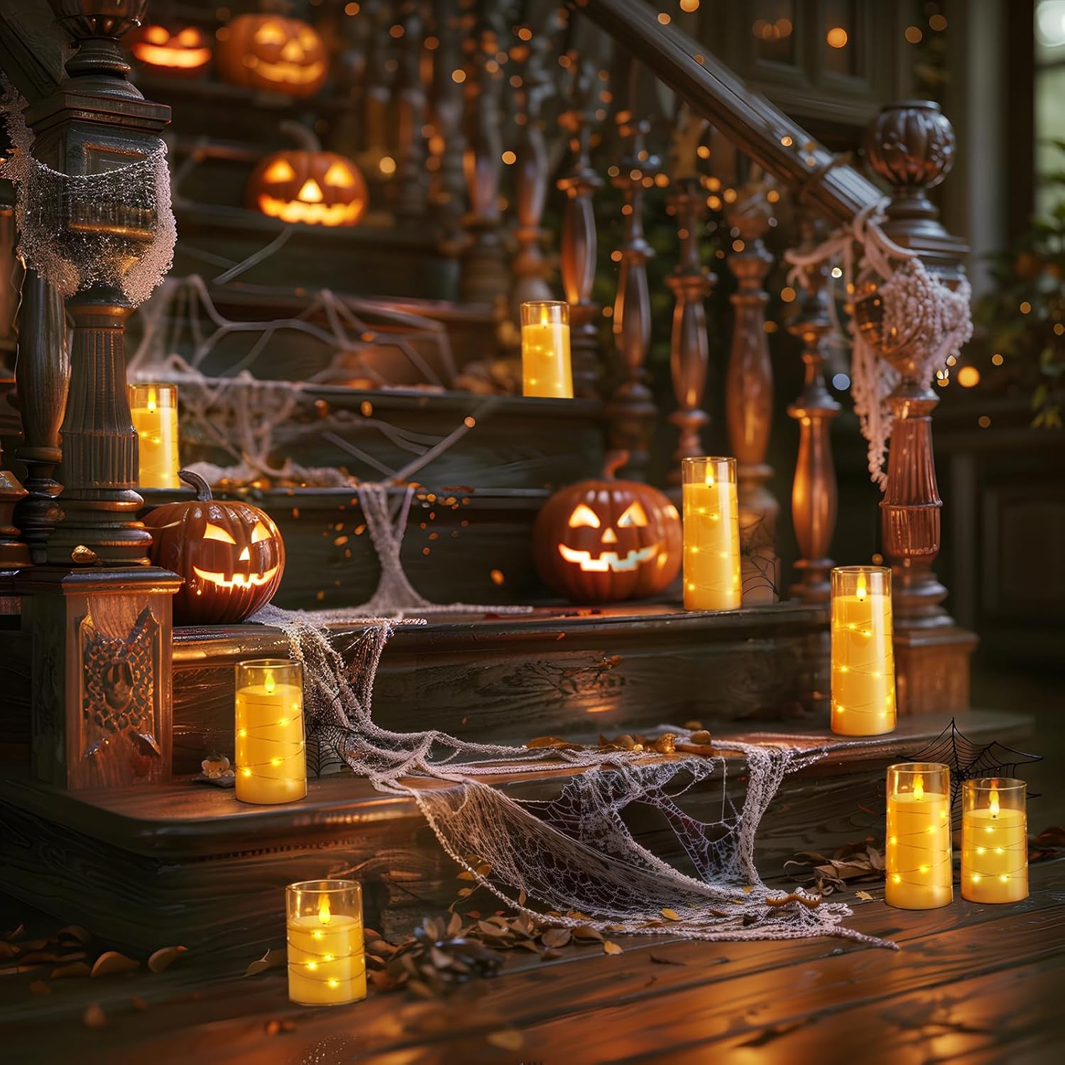 - Charming String Light Design: These Homemory flameless candles are creatively wound with fairy lights to emit a bright and beautiful light, the embedded string lights are perfect for use in decorative scenes such as home, wedding, Halloween, Thanksgiving, Christmas, etc.