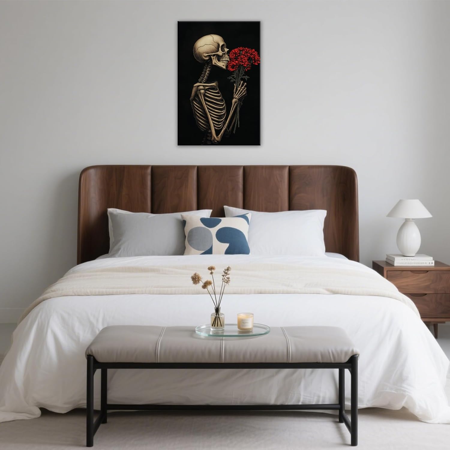 OAAPITI Red Rose Skull Wall Art Dark Themed Skeleton Painting Modern Artwork for Gothic Home Decor(Artwork-5,20"x30")