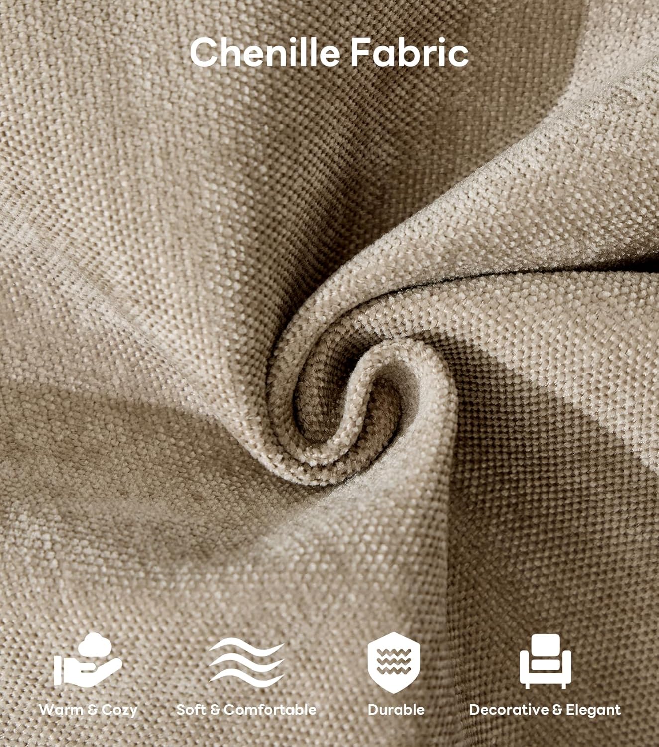 - Chenille Fabric - Wrapped in chenille fabric, this sectional couch combines velvety softness with everyday durability. The dense, textured weave resists pilling while maintaining its plush feel, and its naturally breathable properties keep you comfortable in any season.
