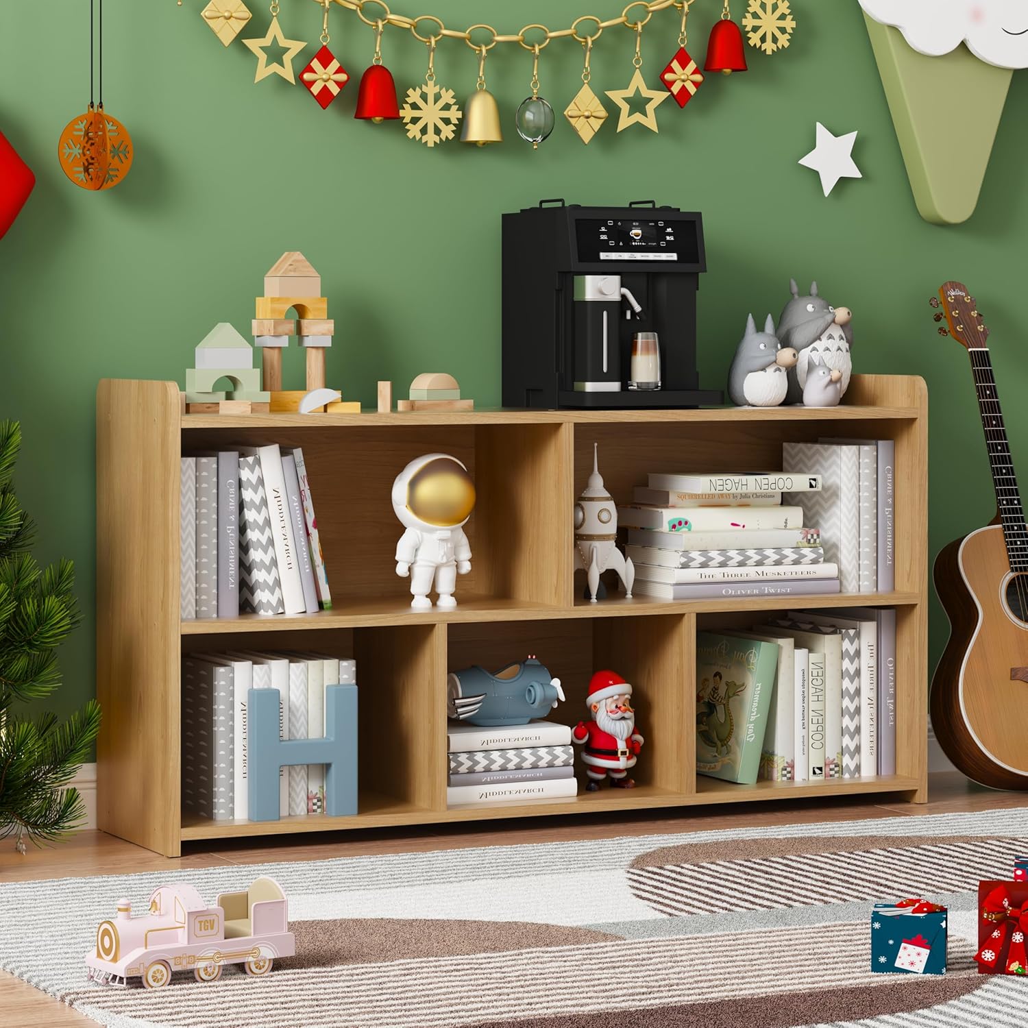 Book Shelf, 5 Cubes Storage Organizer, Open Shelf Wooden Bookcase, Freestanding Log Bookshelf Cube Shelf for Bedroom, Living Room, Home Office