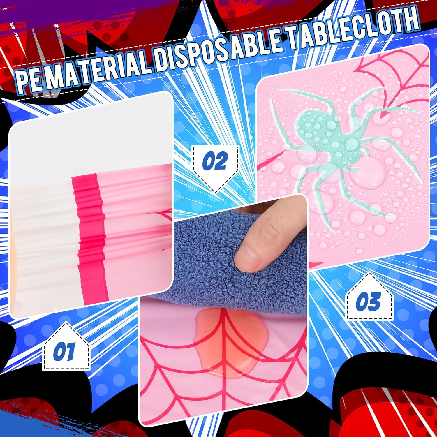 - Pink Spider Birthday Decorations: this set includes 3 spider-themed tablecloths that are suitable for cartoon enthusiasts; They are an ideal addition to any celebration, including spider-themed birthday parties, Halloween parties, cartoon-themed birthdays, and other events