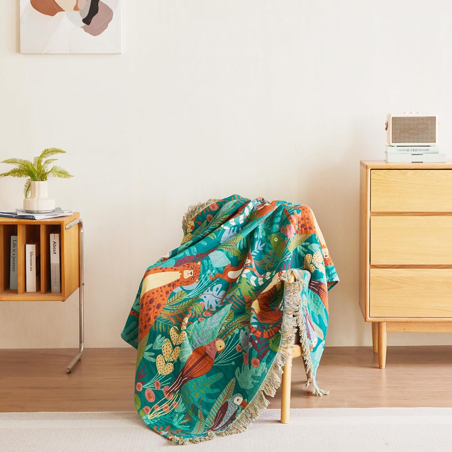 MSGKV Throw Blanket for Couch Bed Cotton Muslin Breathable Animals Twin Size Blanket 60"x80" for All Seasons Lightweight Farmhouse Blankets Home Decor