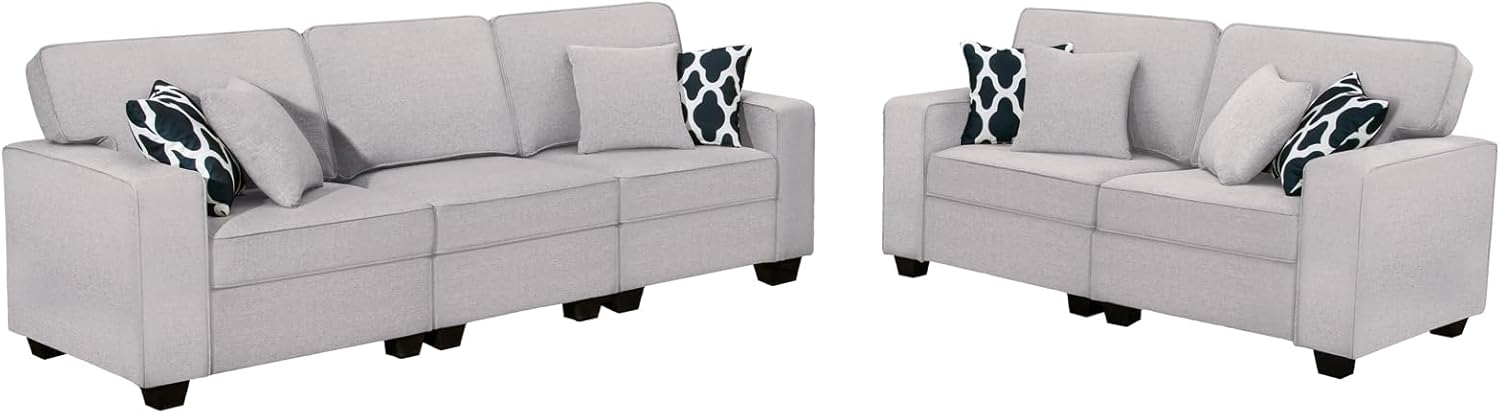 - 【Ergonomic Design】The backrest of the couches for living room perfectly fits the human body curve, the armrests are wide and at the right height, and the living room sofa as a whole is ergonomically designed to give you comfortable support. The modular sectional sofa is paired with multiple multi-functional small pillows, allowing you to relax anytime, anywhere. The oversized couch has a weight capacity of up to 660 pounds to give you stable support.