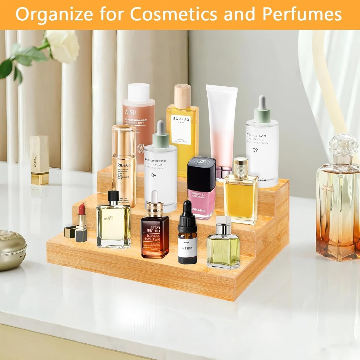 - [Multifunctional Counter Shelf] It can not only be used as spice organization for cabinet, but also used as a display stand for perfumes, medicine bottles, vitamin, nail polish and collectibles (please verify dimensions before purchase to ensure compatibility).
