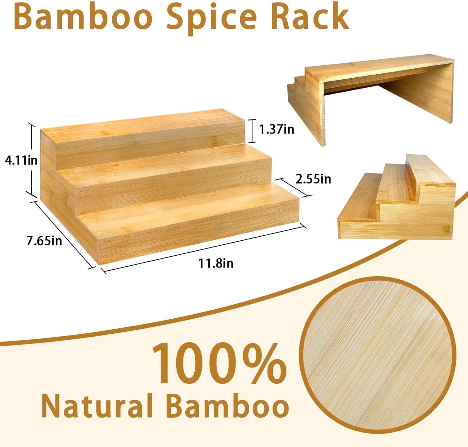 - [Bamboo Spice Rack] The seasoning rack is crafted from high-quality natural bamboo and undergoes a double-layer painting process, resulting in a smooth, refined surface that accentuates the natural grain and color of the bamboo while significantly extending durability and service life of the spice organizer.