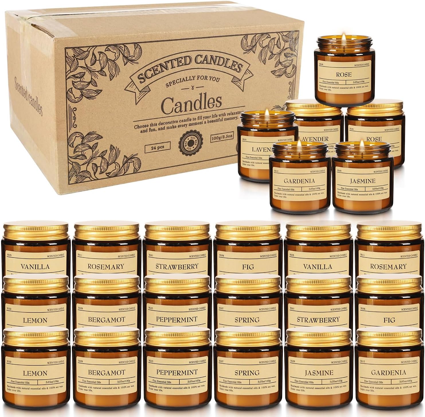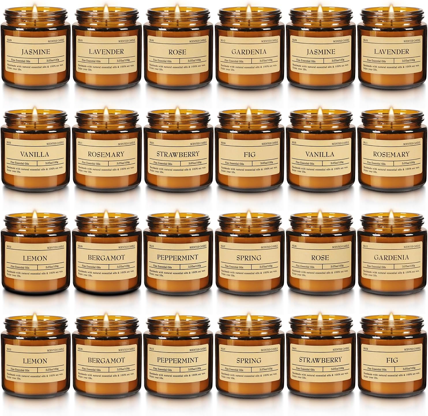 Scented Candle Set 24 Pack, Candle for Home Scented, Odor Eliminating, Stress Relief, Long Lasting Soy Wax Gift Set