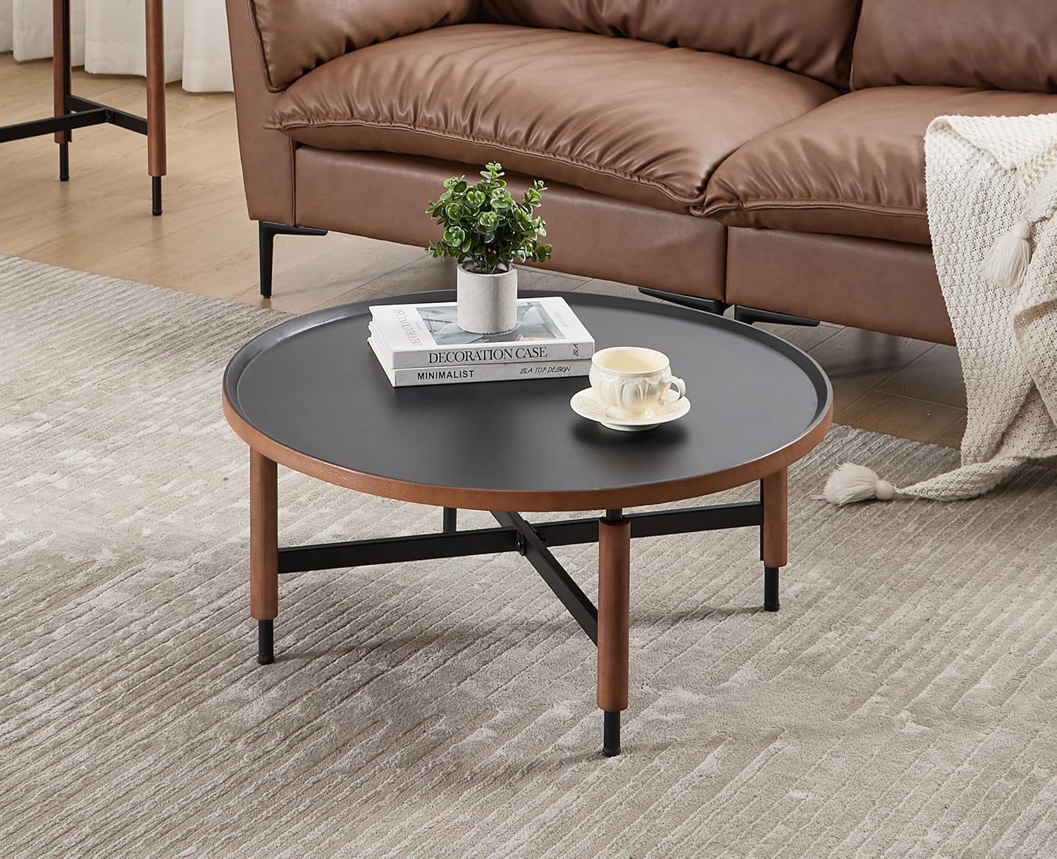 - Mid Century Coffee Table: The black tabletop of the coffee table is paired with brown wooden decorations. Add a refined and elegant atmosphere to your living room/reception/office. Suitable as an couch sofa table, or living room table