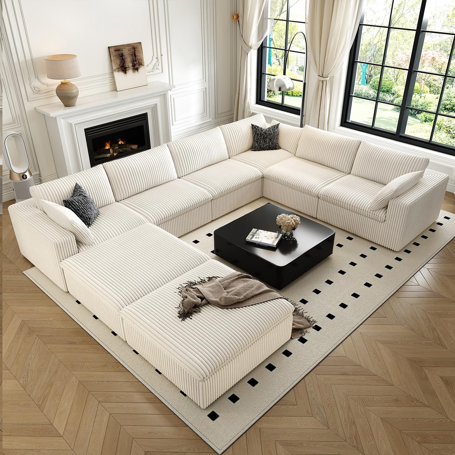157.5" Cloud Couch Oversized Modular Sectional Sofa for Living Room,Modern Sofa with Deep Seat,8 Seater Boneless Couch with 2 Ottoman,Comfy Upholstered Couches for Apartment, Studio, Office,White