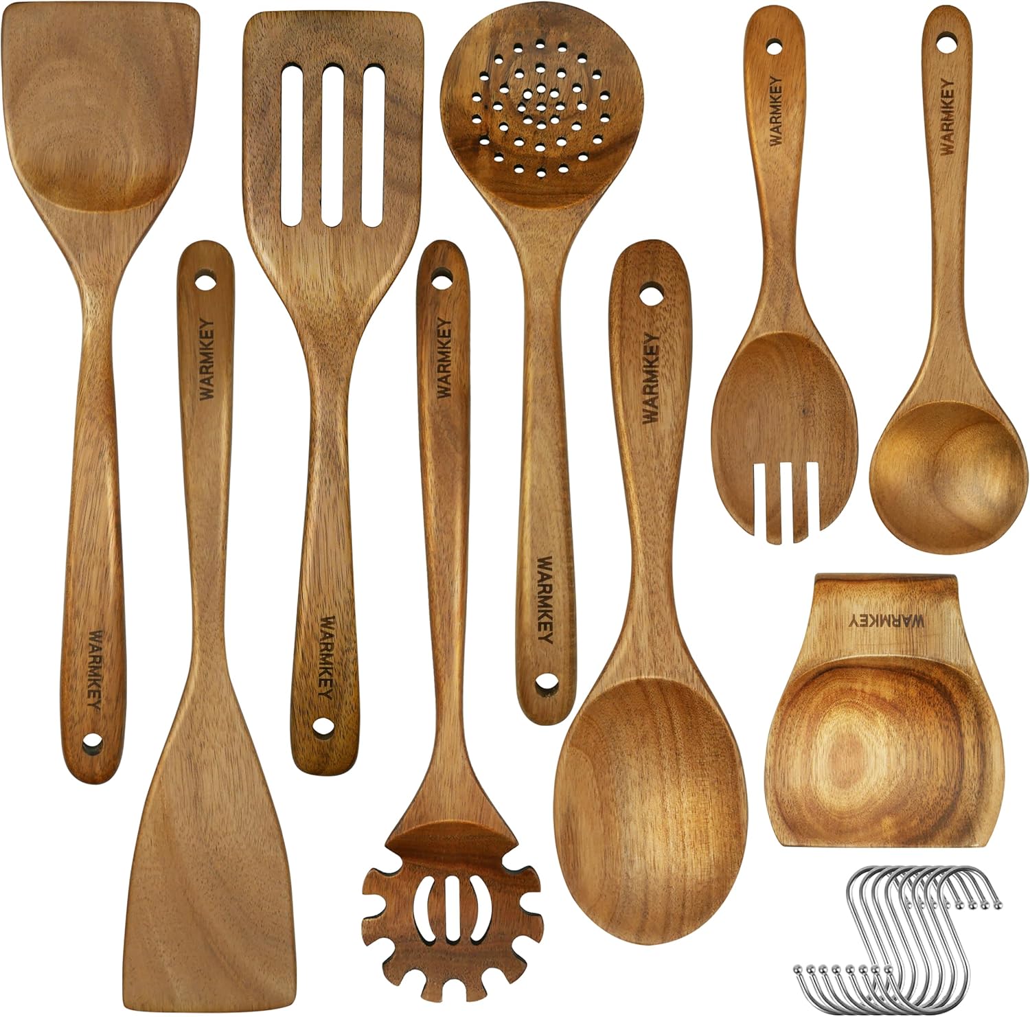- 【Easy To Clean & Eco-Friendly】 Our wooden utensil sets are nonstick, easy to clean with warm or soapy water. This wooden utensils set is also completely biodegradble and decays fast than plastic ones. Definitely a great wooden kitchen utensils gift.
