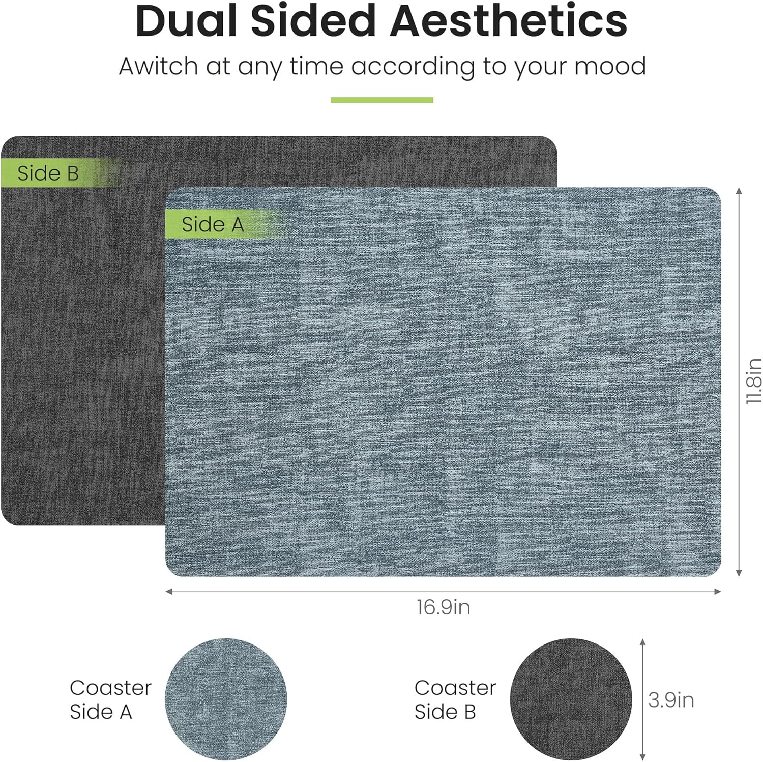 - COST-EFFECTIVE LEATHER PLACEMATS: Our faux leather placemats are made of high quality faux leather, which ensures superior quality and long-lasting durability. Designed with different colours on both sides, it is equivalent to having two different placemats, our placemats are reversible, so you can switch between the two colours at will depending on the occasion or mood. It also comes with a combination of coasters to protect the cups while providing a better dining experience for the diner