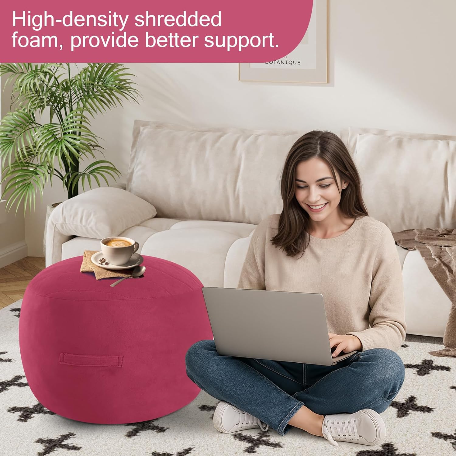 - Convenient Handle: Portable floor pouf ottoman, equipped with a sturdy handle, this lightweight pouf footrest ottoman effortlessly transitions between rooms, adapting to your seating or lounging needs