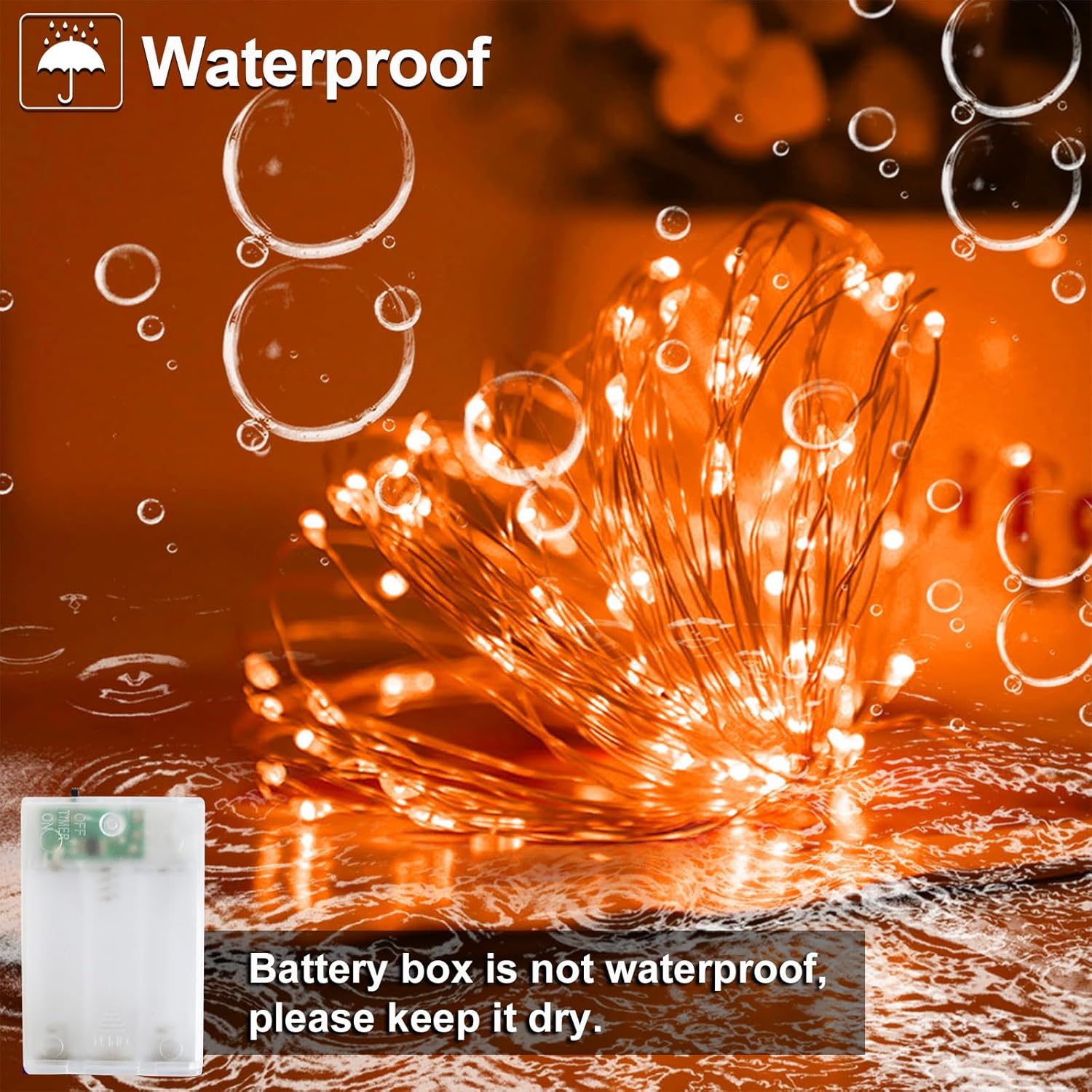 Halloween Fall Decorations Orange Fairy String Lights Indoor, Battery Operated with Timer, 2 Pack Total 33FT 100 Led Mini Battery Powered Twinkle Mason Jar Waterproof Firefly Lights DIY Party