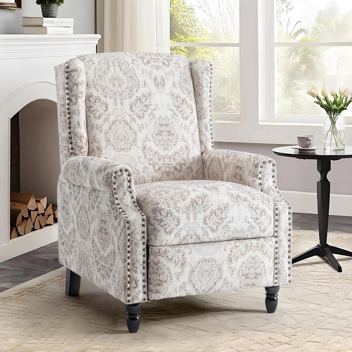 - Attractive Printed Pattern Chair - This armchair features nailhead trim, rolled armrests, vintage wooden legs and a beautiful patterned design for a traditional and chic look. Ideal for waiting room, living room, bedroom, dressing room, dressing room, office, reception room.