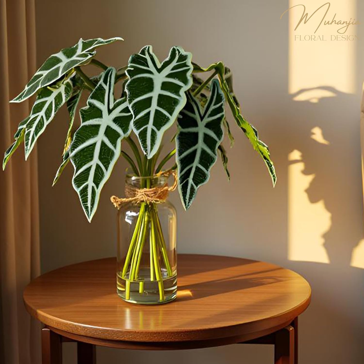 - 【Multi-purpose Home Decor】Whether you're hosting a rustic-themed event or aiming for a nature-inspired decor style, our faux alocasia leaf arrangement is the perfect foliage decoration to create stunning table centerpieces. It is suitable for decorating the kitchen, bathroom, bookshelf, cabinet, work desk, coffee table, dining table, party venue, wedding venue or farmhouse. Additionally, it makes an excellent gift for housewarming parties and Christmas celebrations.