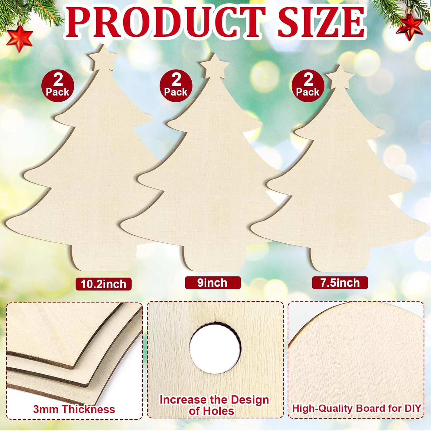 - Nice Gift: You can use these unfinished wooden Christmastree ornaments to make christmas gifts for your friends, lovers, and family. Of course, it is also a good choice to complete your crafts with your kids