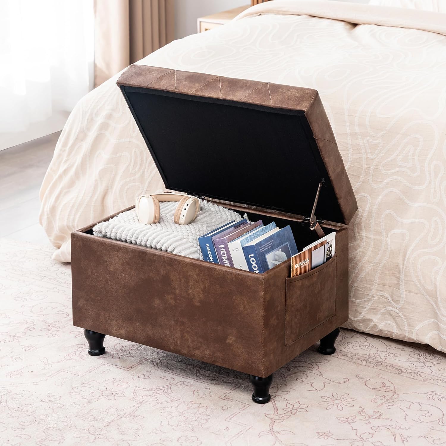 Leather Storage Ottoman Bench Rectangle 24 Inch Foot Rest Ottomans Stool for Living Room Bedroom(Brown)