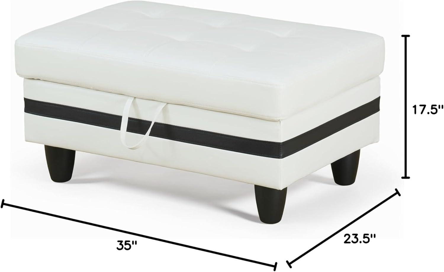 Ottoman Rectangular Storage Ottoman Bench, Faux Leather Footrest, Coffee Table, Stool Footstool with Hinged Lid for Living Room, Bedroom, Entryway, White with Black Strip, 35"x23.5"x17.5"