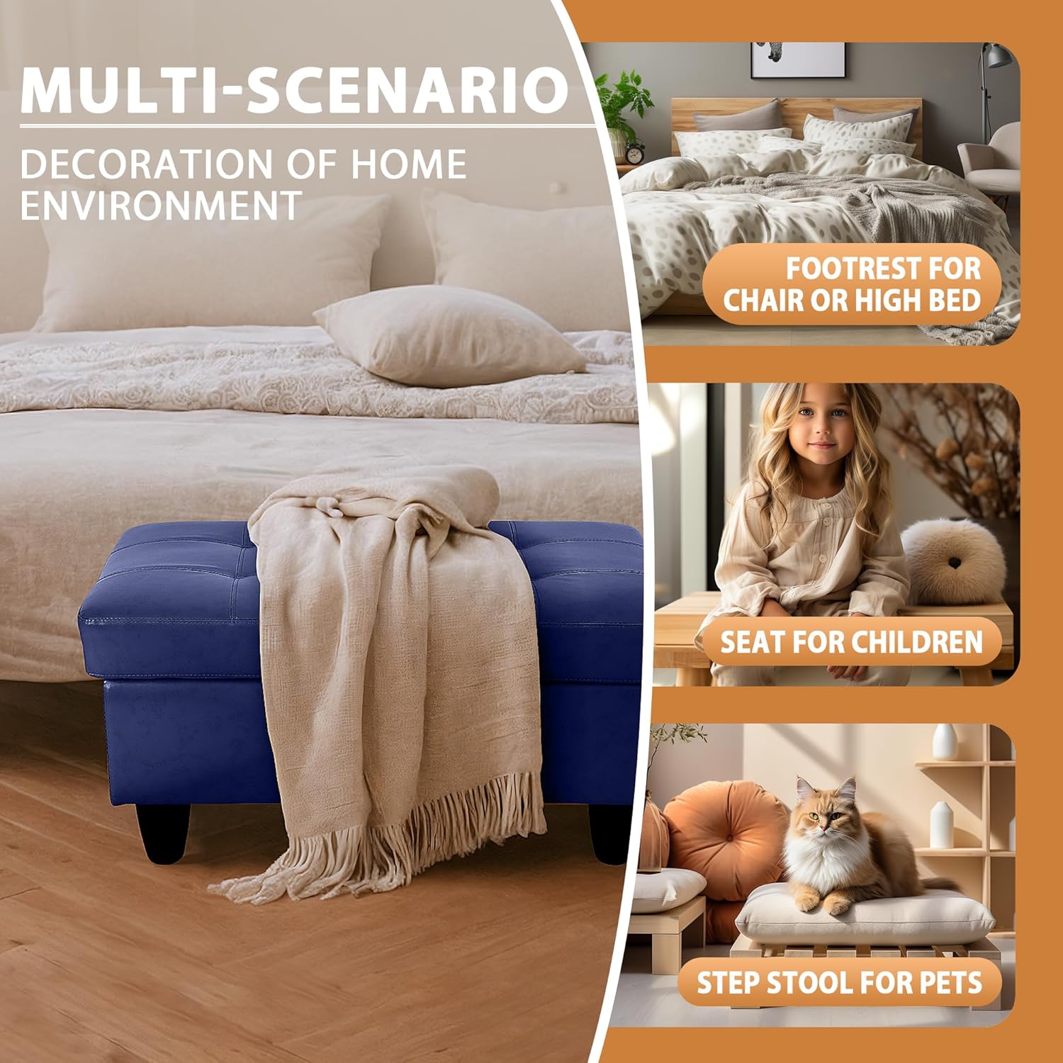 Ottoman Rectangular Storage Ottoman Bench, Faux Leather Footrest, Coffee Table, Stool Footstool with Hinged Lid for Living Room, Bedroom, Entryway, Blue, 35"x23.5"x17.5"