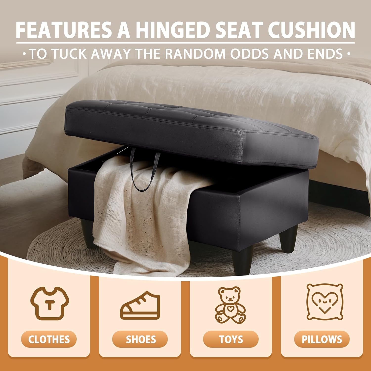 Ottoman Rectangular Storage Ottoman Bench, Faux Leather Footrest, Coffee Table, Stool Footstool with Hinged Lid for Living Room, Bedroom, Entryway, Black, 35"x23.5"x17.5"