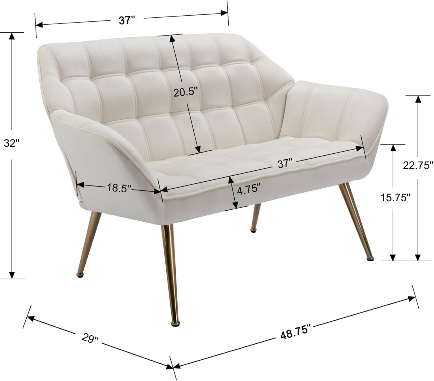 48”Small Loveseat Sofa, Modern Velvet Upholstered Mini Couch 2-Seater Fluffy Love Seat with Quilting Backs and Metal Legs for Small Space Living Room, Bedroom, Beige