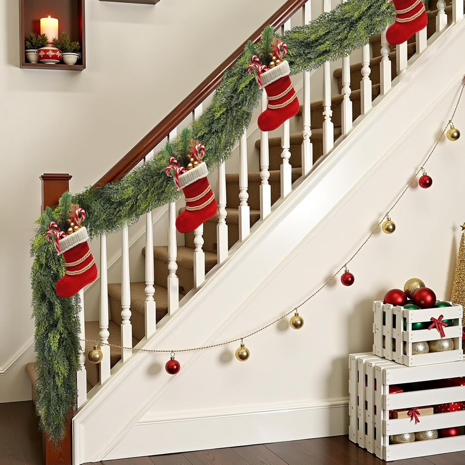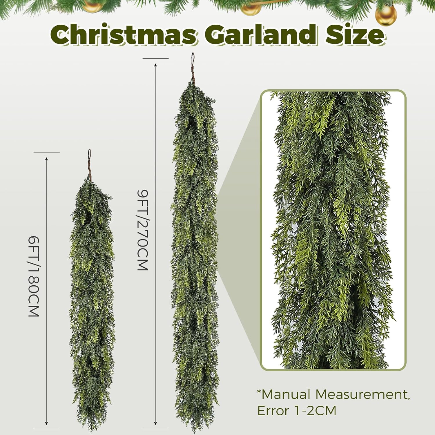 9 ft Christmas Garland, Cedar Garland, Real Touch Cypress Garlands, Green Artificial Greenery Garland for Mantel Indoor Outdoor Christmas Decorations