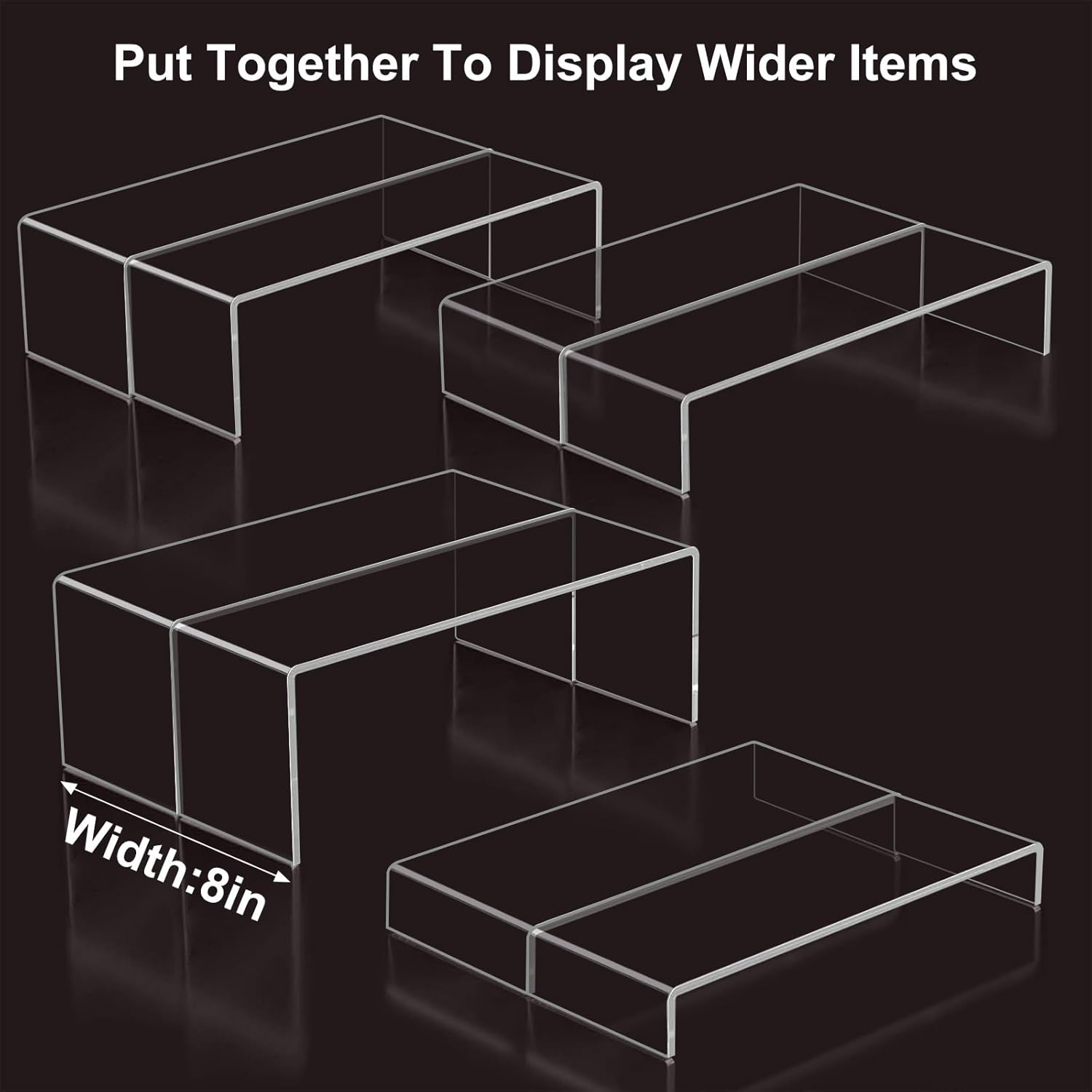 Acrylic Display Risers,12'' Large Display Stands, Thickened to 0.2''(5mm) Stackable Acrylic Shelves for Perfume Display, Clear Risers for Cupcake Stand,Pop Figurines,Tumbler,Food (Clear, 8PCS)