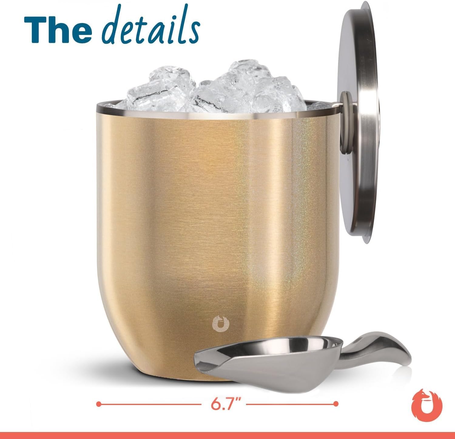 - Timeless Style: The last ice bucket you’ll ever need, and frankly, ever want. Our beautiful 3-liter bucket uses insulated stainless steel so your ice and drinks stay refreshingly cold. The ‘floating’ lid with side holder, includes metal ice scoop, and rubber base making it fun to use while mixing your guests’ favorite cocktails. Bring it to the patio or cookout—the outside is condensation-free so it’s easy to carry. A must-have home entertaining bar accessory, and a treasured gift.