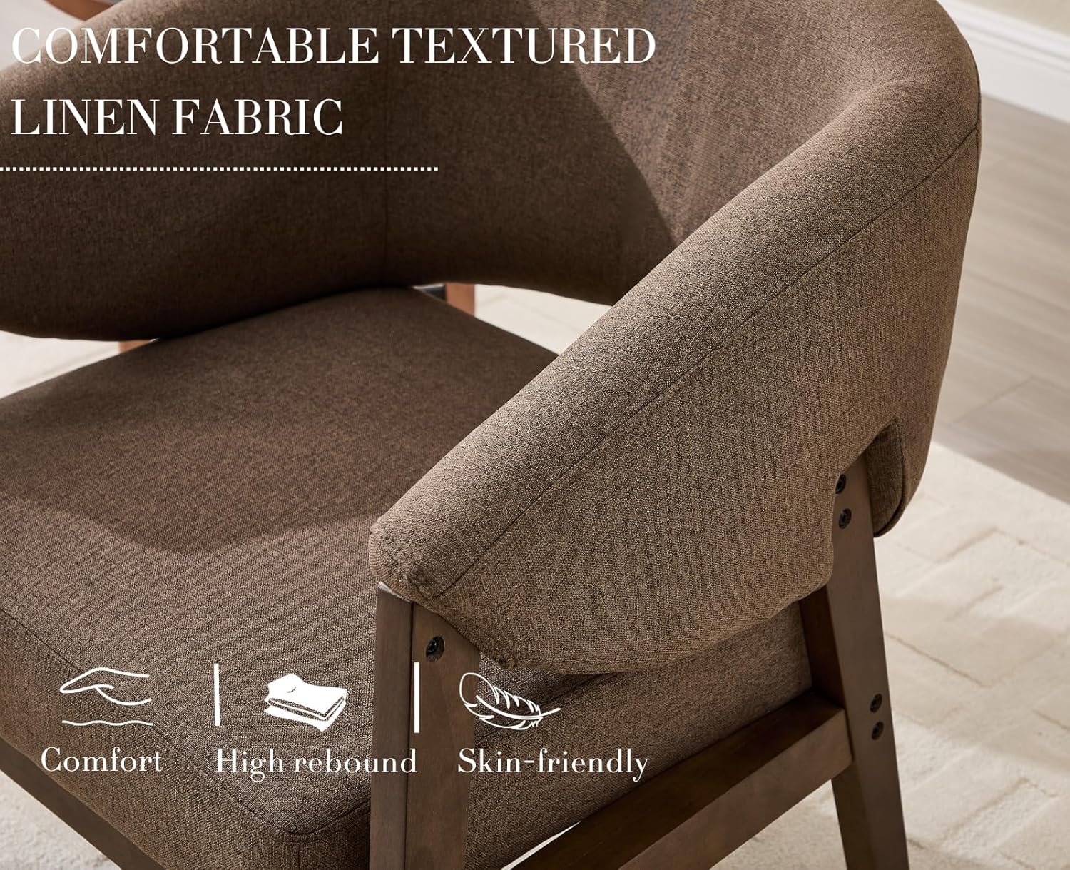 - [Earthy Warmth, Effortless Charm-Naturally Inviting]-Wrapped in rich linen brown, this barrel chair adds a grounded, organic vibe to any living space. The warm tone and textured fabric blend perfectly with rustic, boho, or mid-century modern decor — making your lounge spot feel cozy and timeless all at once.