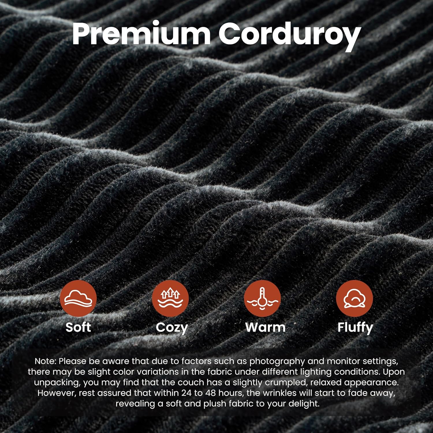 - Corduroy Fabric:Experience the lavish comfort of our enhanced corduroy fabric, offering unmatched softness and warmth. Its impressive durability and stain-fighting prowess keep your sofas looking fresh and lively. With a variety of color choices, our corduroy chaise sofa lets you showcase your unique style while adding irresistible charm to your space