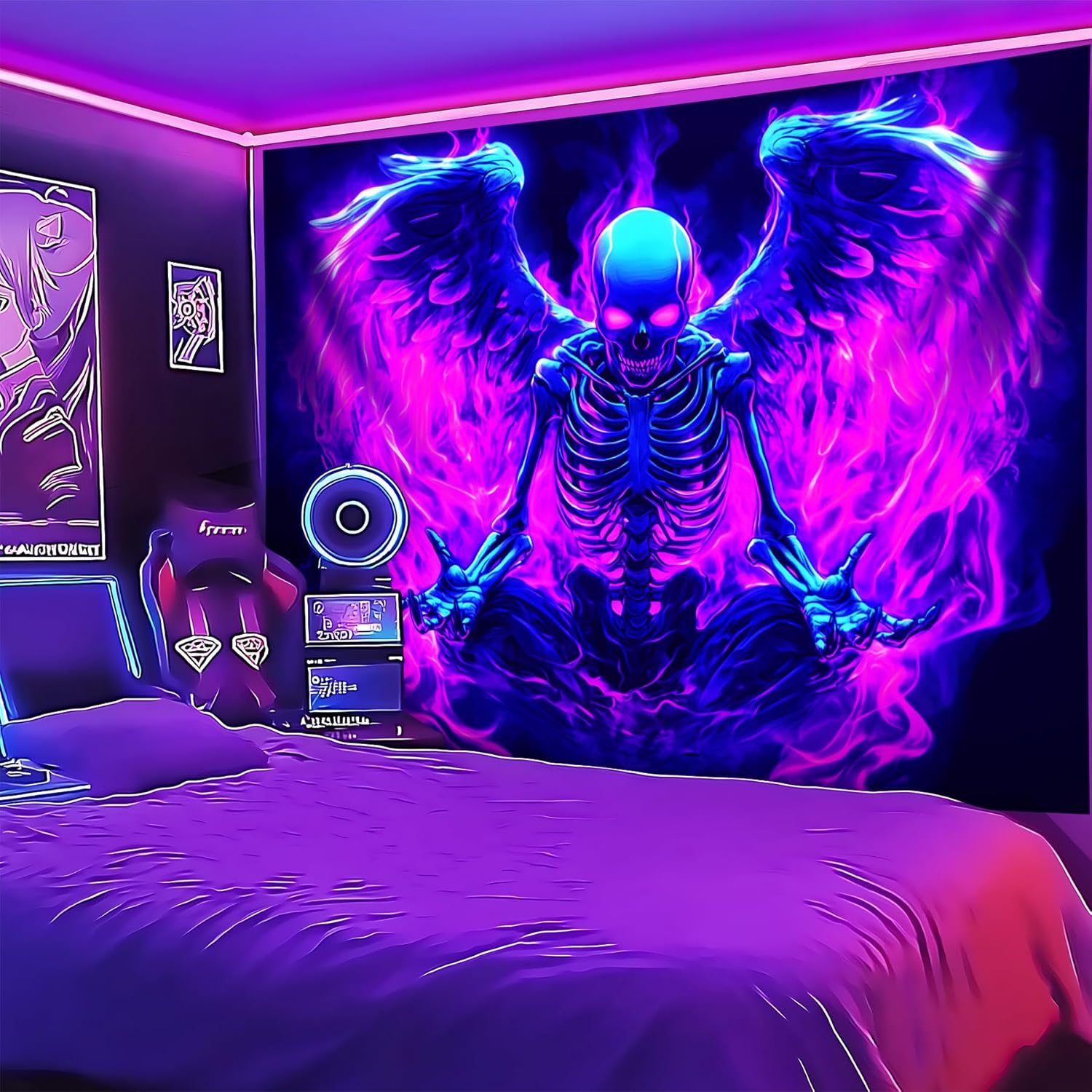 - 【Blacklight/UV Reactive】 Due to the special ink and advanced technology, the blacklight wing tapestry's colors can be changed under Black Light or UV Reactive Light. You can enjoy different effects by kinds of light, the tapestry will be amazing. Under normal light, the colors are also beautiful.