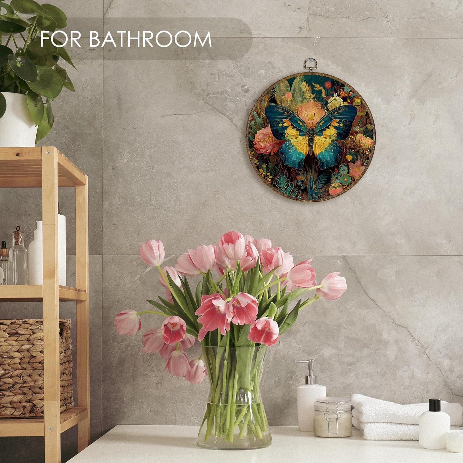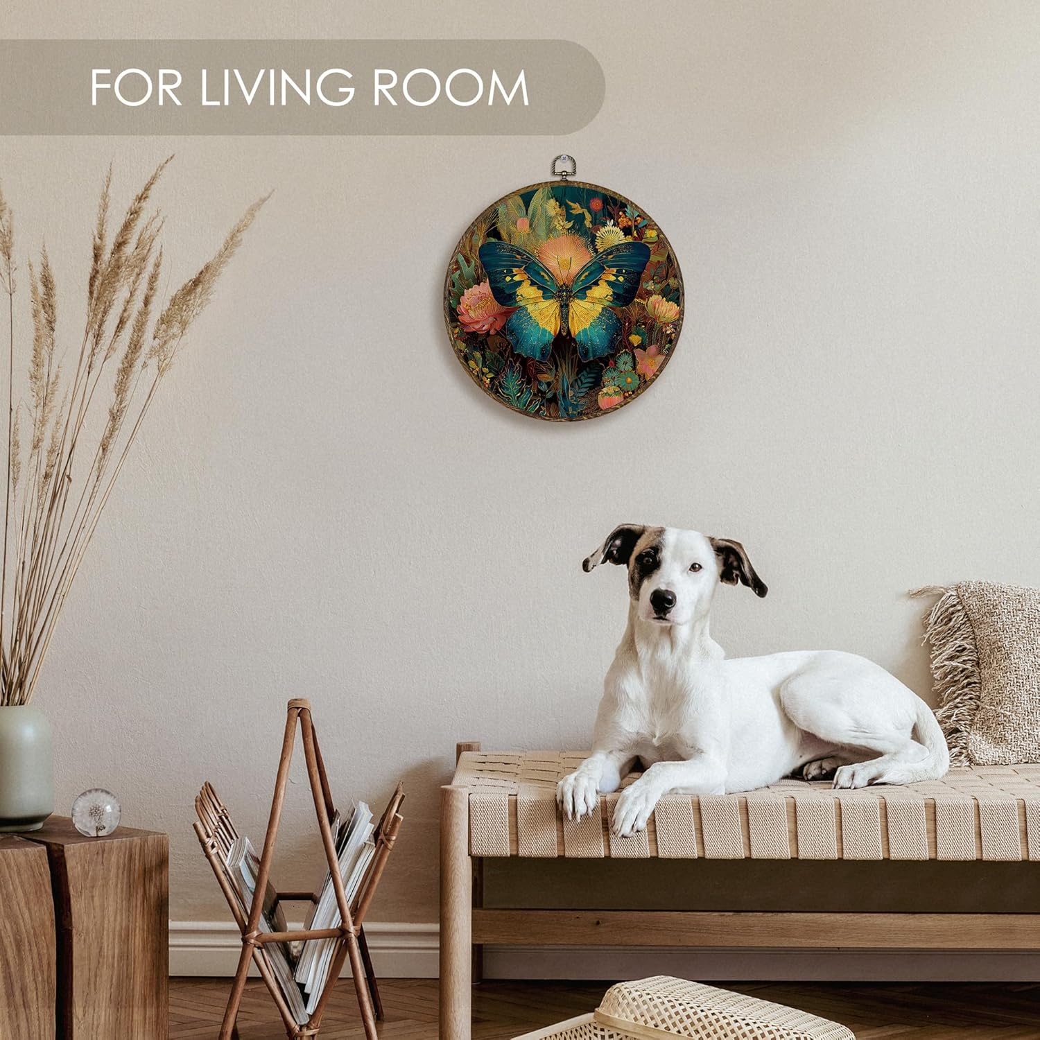 - Premium Material: Crafted with textile canvas and high-quality digital printing (not embroidery), stretched over a round plastic frame with a wood-like finish that resists bending or warping.