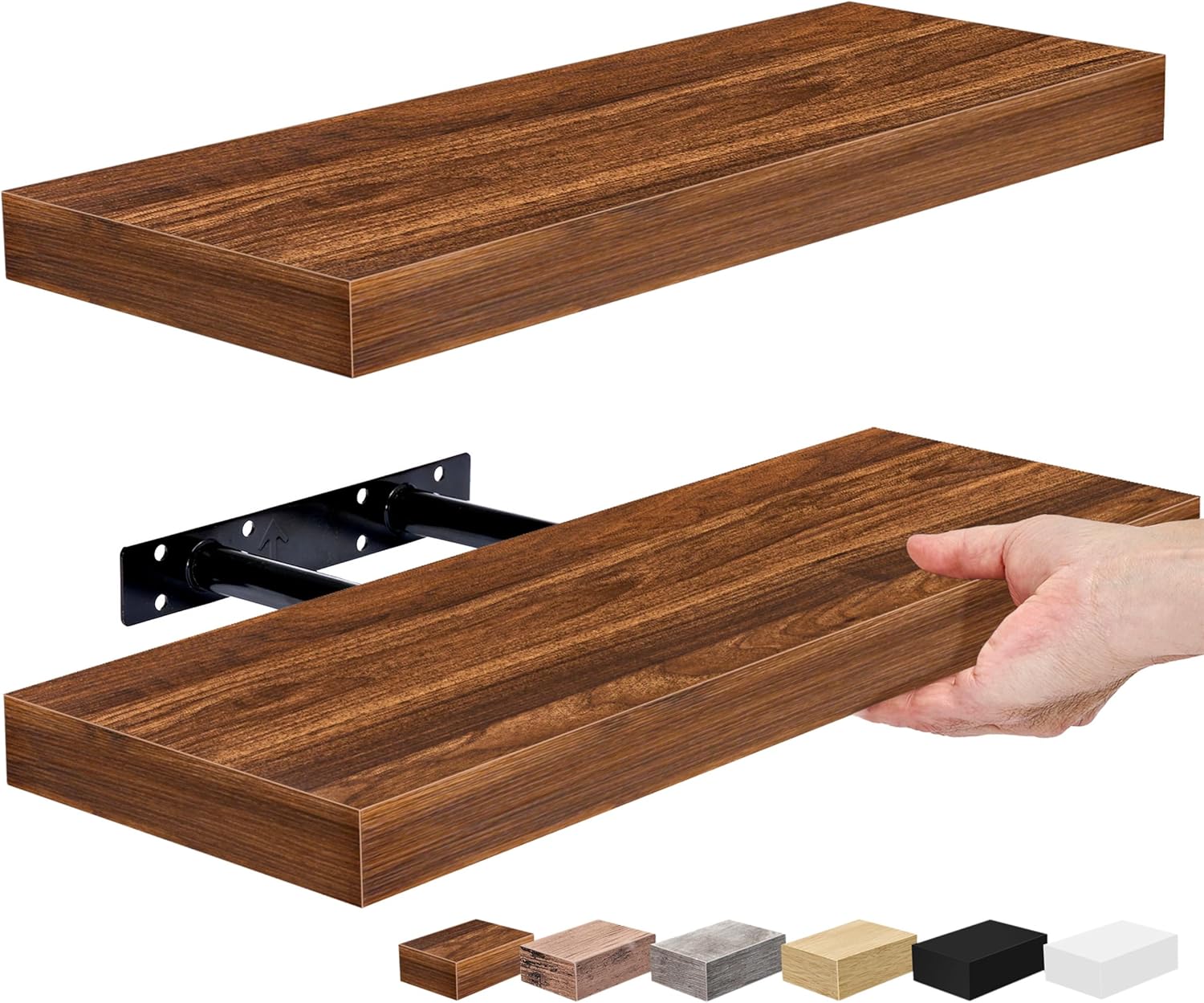 - Easy Installation: Mounting hardware INCLUDED the Hanging shelves are made of beautiful MDF with PVC + Bracket - Sturdy enough to arrange and display your favorite small objects - Attaches firmly to the wall without visible support - Minor assembly required - Supports up to 22 pounds per shelf - Measures approximately 16.25 inch L x 5.50 inch W - Each display shelf 1.5 inch thick