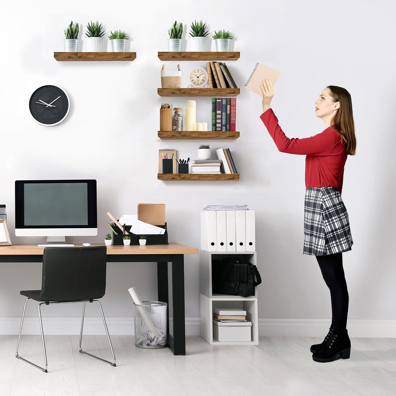 Sorbus Floating Shelves for Wall, Bathroom Shelves Wall Mounted for Kitchen, Bedroom, Living Room, Bathroom Storage, Over Toilet, Hanging Book Shelf for Wall Home Decor (Rustic Brown, 5 Pack)