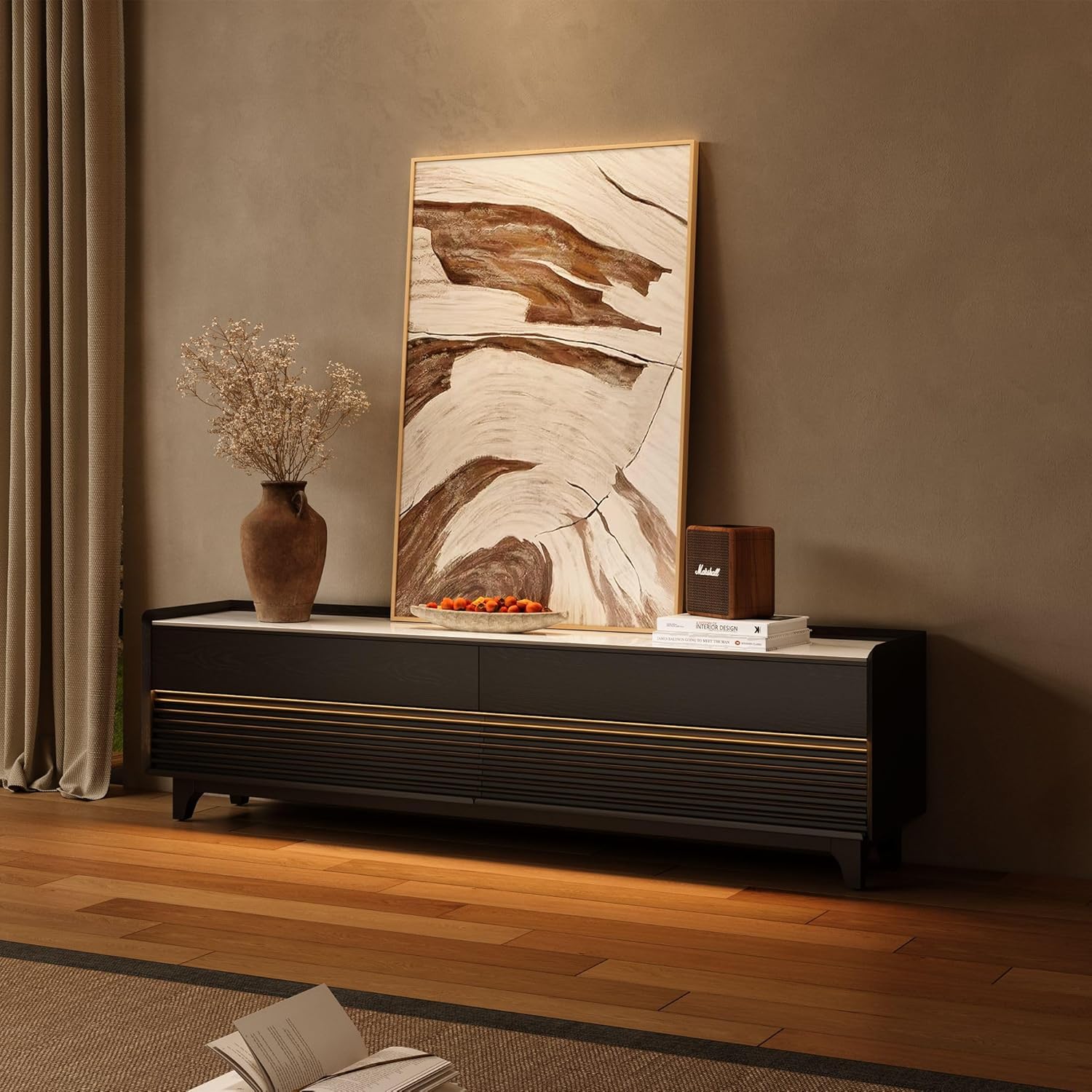 - Fully Assembled TV Console: This sintered stone tv stand with Legs comes fully assembled, saving you time and effort. No complicated instructions or tools required, upon receiving it, you only need to screw the middle support foot into the corresponding hole
