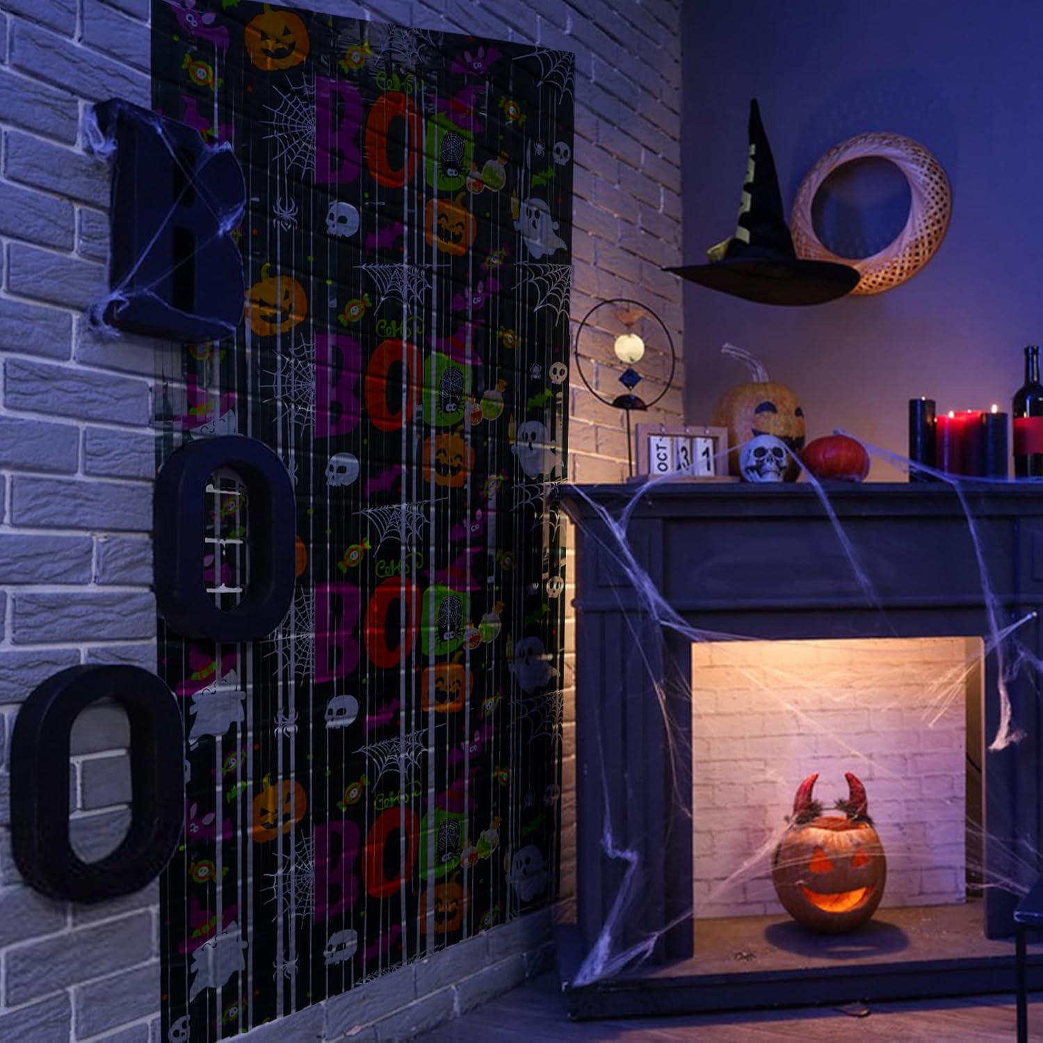- Features creative boo, lantern, spiders, bats, and black color streamers with a shiny surface wall backdrop, giving your party space a festive and spooky atmosphere.